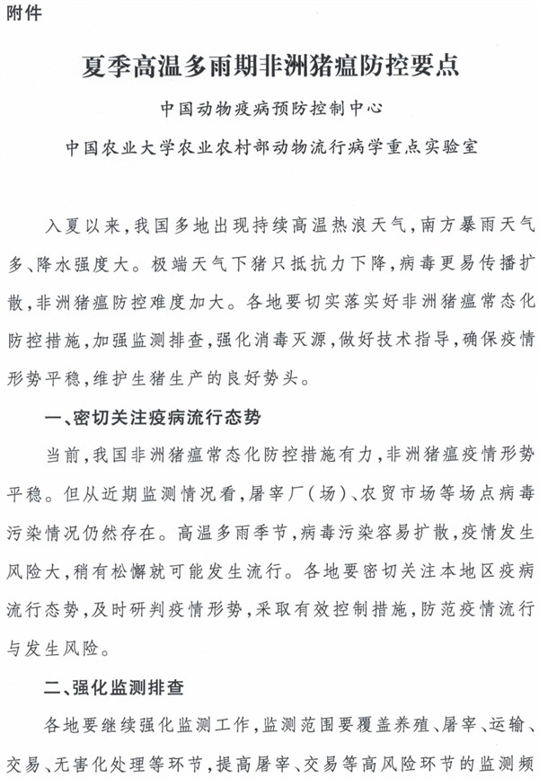附件:中国动物疫病预防控制中心关于印发夏季高温多雨期非洲猪瘟防控要点的通知.pdf